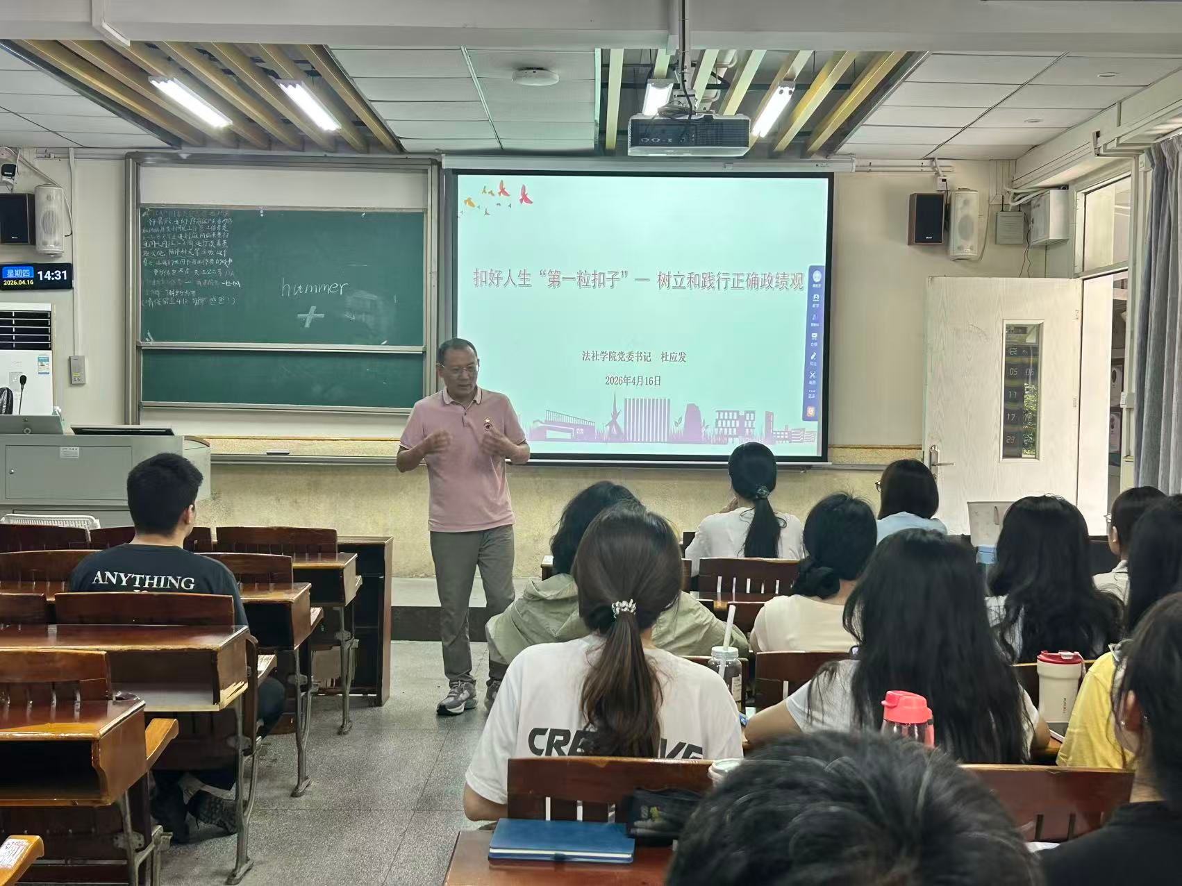 党委书记杜应发以“扣好人生‘第一粒扣子’--树立和践行正确政绩观”为题,为51吃瓜全体学生党员讲专题党课。
