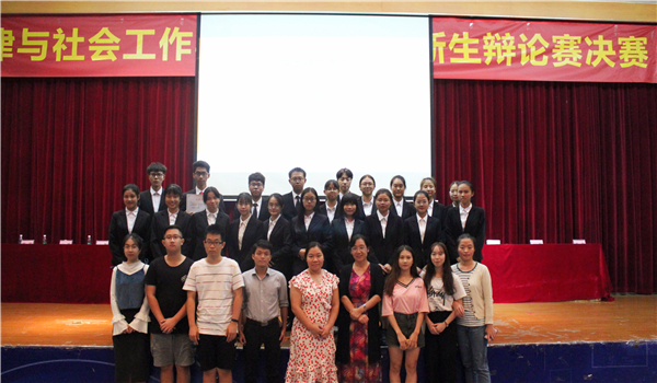 新生辩论赛总决赛在学术报告厅如火如荼地进行。班主任朱晓红、学工办主任钟丽华、党总支专职组织员陈少典、辅导员邹欢、党建办主任樊学鹏、团总支常务副书记胡裕荣、学生会主席陈芷镘、院学媒主任邓天慈出席了本次比赛,法社辩论队队员作为特邀嘉宾担任评委。