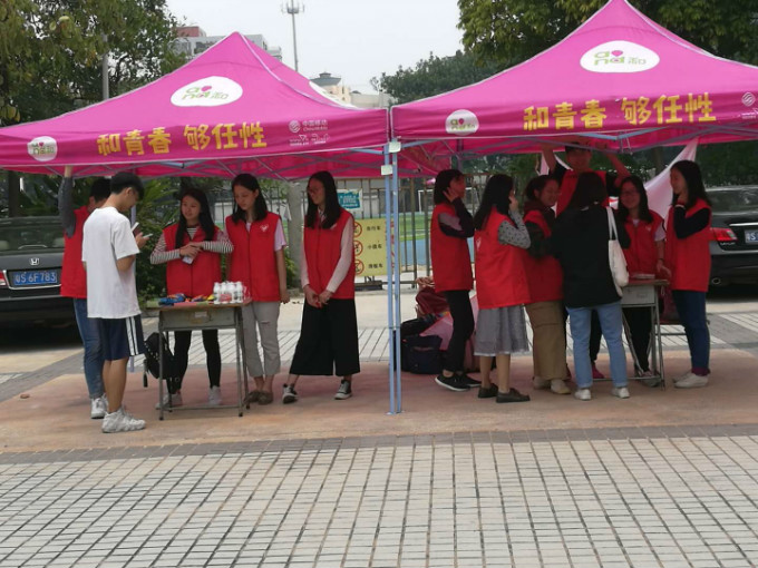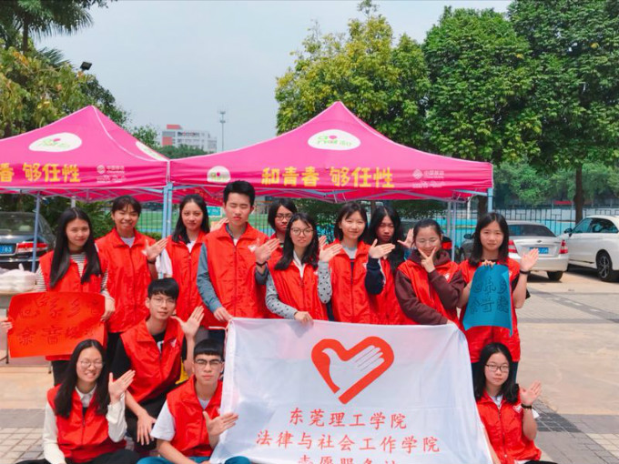 十一点三十分,志愿者们相继到场进行摊位布置;十二点,活动准时进行。本次活动由“线上传声筒”、“方言教程”、“销声匿迹”三部分组成。在摊位上,随处可见的有关“莞工法社团总支志愿服务站”微博号,吸引着过路者的关注,推进着线上传声筒活动的举行,给予了同学们听觉上的愉悦。同时方言教程和销声匿迹的活动也引来了许多参与者,活动在一片斗智斗勇和欢笑声中顺利开展起来。