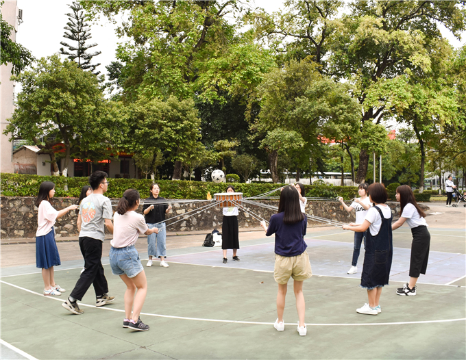 趣味运动赛“众星捧月”第一场在大礼堂前篮球场举行。比赛的队伍分别是17级社会工作1班,17级行政管理1班和2班,16级社会工作1班,16级社会工作2班和行政管理1班。