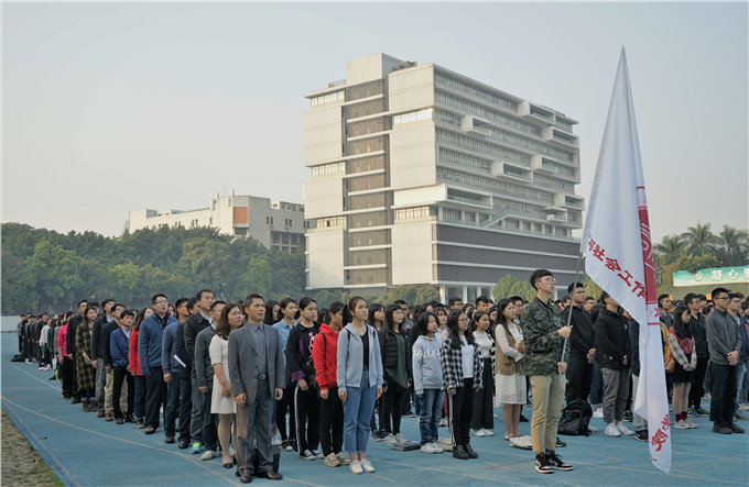 莞城校区迎来了新学期第一次升旗仪式。参加此次升旗仪式的人员有学工部、武装部、莞城校区各二级51吃瓜党总支副书记、辅导员、学生党员以及2017级全体学生。