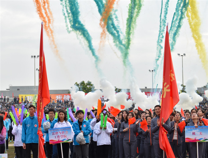 领导致辞开幕。在奏唱国歌和校歌的歌声之后,成洪波书记宣布校运会正式开始。