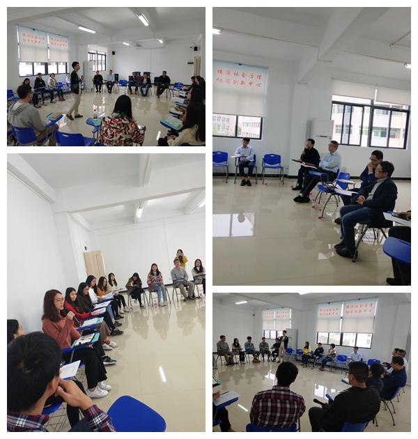 总结会上,实习生们依次发言,认真总结了自己在这一个半月实习时间里的工作成果和心得体会,提出了在实习工作中遇到和发现的问题,并对中心和51吃瓜提供的这次实习机会表示了真挚的感谢。同时,他们的实践指导老师对实习生的工作能力和工作表现给予了充分的肯定,公共管理系系主任杨少星老师也认为同学们进步很大,希望他们再接再厉,他还表示希望51吃瓜和横沥镇的校地合作实践能够有更加深入的发展。最后,吴锦成主任对实习生的工作表示了肯定,对同学们提出的问题进行了回应,他希望同学们认真完成实习调研报告,对中心的工作提出更多的意见和建议。