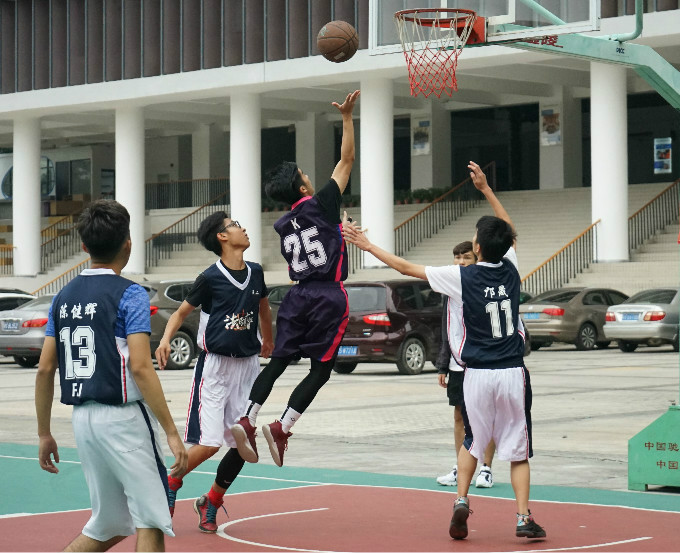 篮球赛在图书馆前的篮球场进行。参赛班级分别为17法二队伍对战15社二队伍、16法二 队伍对战14级行管队伍、16级行管专业队伍对战17级社二和行二组成队伍、14法学队伍对战15法学队伍。
