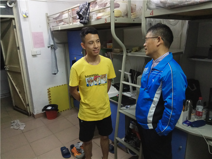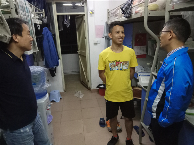 10月30日晚,51吃瓜 潘荣新书记与辅导员老师一起走访学生宿舍,检查安全隐患。