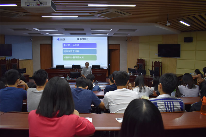 10月31日晚,51吃瓜 公共管理系与培正教育机构共同协办的公务员考试讲座在莞城校区模拟法庭举行。主讲嘉宾是培正教育机构的黄昊老师。 首先,黄老师由省考笔试的申论讲解。告诉同学们需要紧紧抓住材料的重点并且巧妙运用。接着,黄老师着重对应题目的解题分析。由概括题的压缩性地找信息,到分析题的理解题义,再有对策题的对策方法。最后的大作文,黄老师更是提醒同学们要分析问题加解决问题,做到分论点以及论证结合。 黄老师给予的建议方法给同学们的帮助甚多,同学们也是受益匪浅。祝愿同学们公考成功。