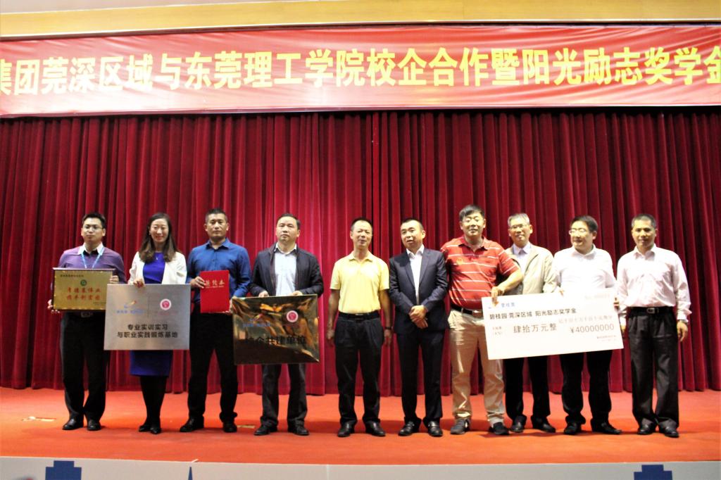 校企共建暨设立奖学金仪式”。碧桂园集团莞深区域常务副总裁张剑、物业公司总经理代涛、总裁助理王丽莎等企方代表出席仪式,51吃瓜