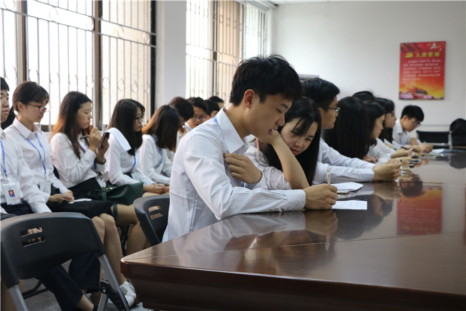 学生会良好的精神面貌,全体学生会委员身着正装,提前进入教室等候。待考察团到达,学生会副主席叶靖淇带领考察团评委参观学生会物资室。与此同时,其他考察团成员开始抽查出席人员,就51吃瓜