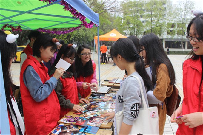 摊位的桌子上罗列了五彩缤纷的电影场景照片,电影主题有青春、文艺、动作、漫画、科幻和侦查等等,为同学们搜罗了各种各样的好电影。小游戏规则是通过辨别这些电影场景照片猜出这个电影的名称,为了增强同学们的兴趣,该活动特意采用了“刮刮乐”的形式。每张电影场景照片的背面都会有个刮条,刮条下就是该电影的正确名字。成功猜中电影名称的同学不仅可以获得这些经典照片,同时可以赢得美味的紫皮巧克力糖果。另一旁还有事先准备好的电影小视频可供同学观看,当然观看过的同学也可以进行电影的竞猜,同样正确猜出电影名称的同学也可获得紫皮巧克力糖果作为奖励。
