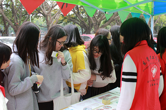 这次的消费者权益保护日宣传活动,主要以让同学参与游戏的方式,去深入地了解消费者权益知识。我们给来往的同学发放印有“消费者权益保护”字样的书签,一方面宣传消费者权益的知识,一方面吸引同学前来参与游戏,深入地去了解消费者权益的知识。游戏方面我们法宣的小伙伴开动脑筋,主要设计了三个游戏:水杯上吹乒乓球、辨认真伪商标、回答消费者权益保护日知识问题。
