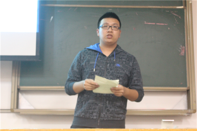 学生会主席毛庆维在大会初始致辞,总结了这段时间的各部门的辛勤工作,并鼓励大家继续努力。在大会主持人的正式宣布下,学生会各部门干事依次发言,总结了各自部门最近一段时间的工作状况,也表达了自己参加学生会以来的一些感受。
