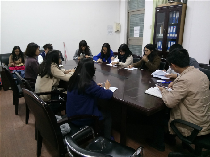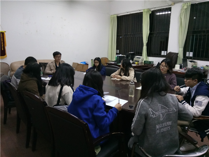 心理辅导站于2016年11月28、29两日晚上在1310办公室举办了与院级各班心理委员的座谈会,旨在向各班心委交待工作以及更好地了解各班情况。