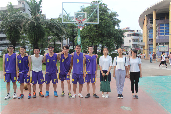 篮球赛第二轮小组赛在图书馆的篮球场举行,14级行管三班和法学一班组成的队伍与14级社工一班和社工二班组成的队伍展开激烈角逐。