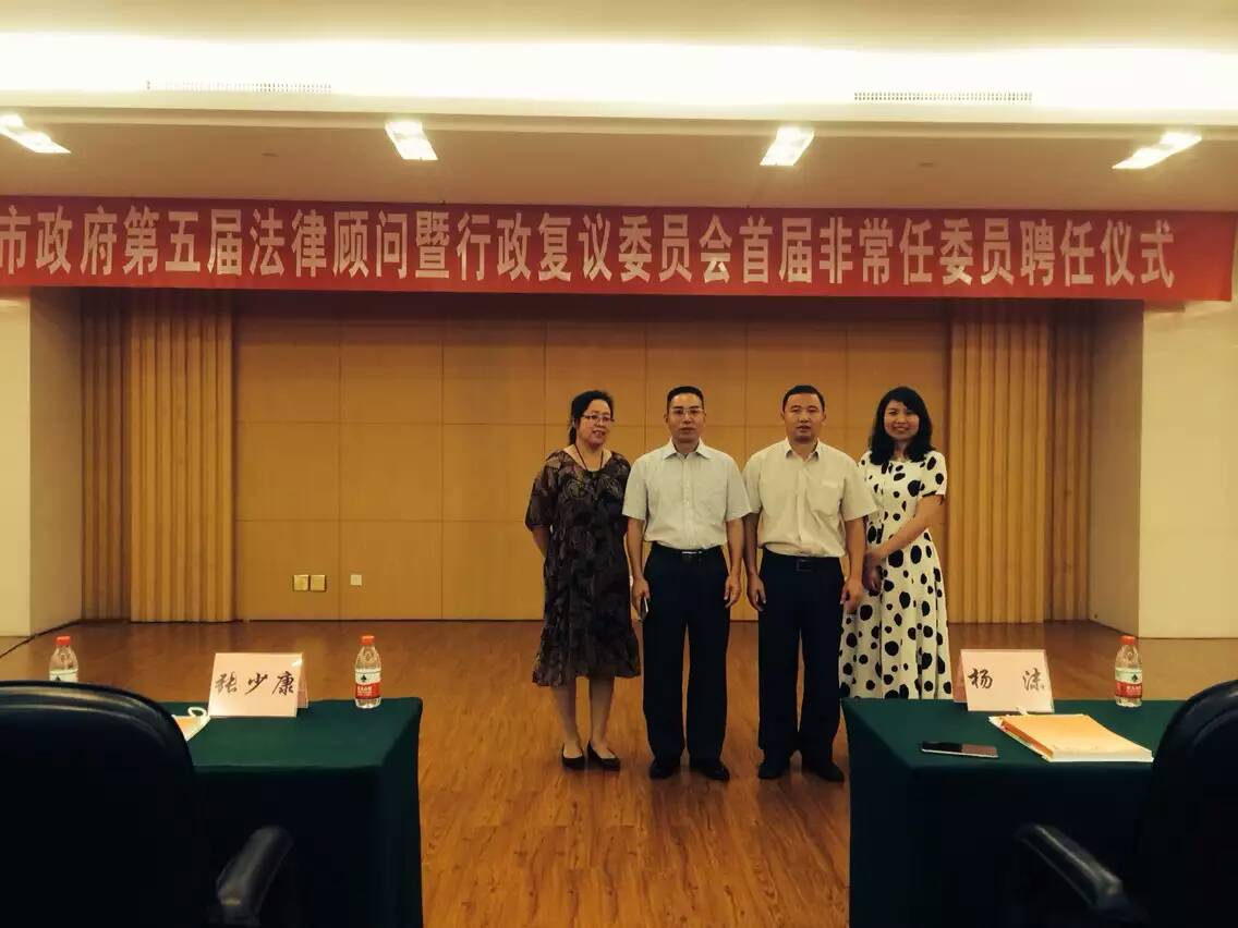 7月1日上午,东莞市政府第五届法律顾问和首届行政复议委员会非常任委员聘任仪式在市政府行政办事中心主楼多功能会议厅举行。我校郑玉敏、沈亚萍、王平、强昌文四位法学专业老师出席会议并被聘为非常任行政复议员、法律顾问。