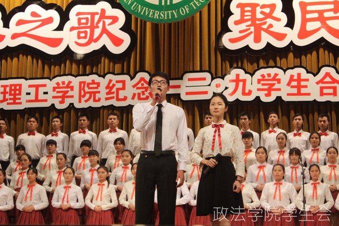 以颂青春之歌•聚民族之心为主题的纪念一二•九学生合唱大赛在松山湖校区的大礼堂如期举行。
