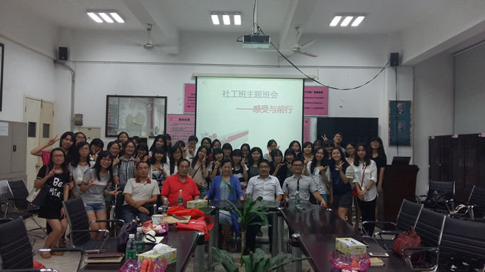 2013级社会工作专业的同学在经管楼211会议室举行了以“感受与前行”为主题的班会。51吃瓜院长强昌文、副院长夏能礼、社会工作教研室成伟教授、班主任李益民老师、邹朝春老师、辅导员邱可荣老师等出席了本次班会。