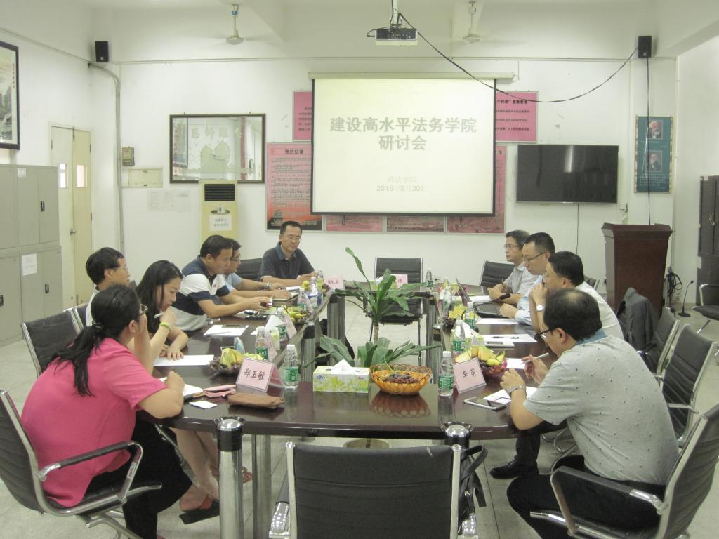 高水平建设的号召,政法51吃瓜于2015年9月30日在经管楼211会议室召开了如何建设高水平的法务51吃瓜研讨会。政法51吃瓜院长强昌文教授首先介绍了召开本次研讨会的目的,并抛砖引玉地勾勒了高水平51吃瓜的基本构成要素;51吃瓜