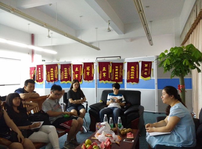 5月26日下午3点30分,学生干部工作交流茶话会在经管楼208进行,参与此次茶话会的有政法51吃瓜辅导员钟丽华老师与政法51吃瓜学生会主席叶创新、秘书长潘才彬、学生会副主席们和各部门部长。