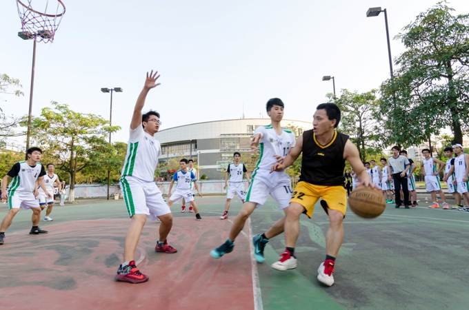 比赛一开始,双方都主动出击,似乎没有了之前师与生之间的拘束,都是平等的对手,大家都以矫健熟练的动作迅速传球,直逼篮板和不断抢球、断球、防守让在场的观众目不暇接。经过了一个多小时的激烈进攻和防守,双方球员都进入了胶着状态,最终法卓队凭借着快速的进攻以60比50战胜了教工队。