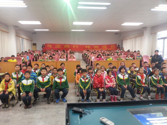 本次普法课堂主要分为三个部分,第一个部分,介绍全国第一个宪法日的设立原因。第二个部分,讲了以反邪教为主题的内容,分别向小学生介绍了什么是邪教组织,邪教组织的危害性,邪教组织在生活中的活动现象,怎样应对生活中的邪教活动等。第三部分是以“青少年沉迷网络的危害性”为主题展开的系列普法教育,其中通过游戏照片引入此部分内容的宣讲,然后通过能反映青少年沉迷网络危害性的照片,漫画等展示,向同学提问,通过讨论,理解图片,然后得出青少年沉迷网络危害性的总结性知识,为了让同学们更好的学会如何安全使用网络,课堂上也结合了不少真实法律案例的讲解,最后以“如何有度使用网络?”结束了此部分内容。讲师巧妙的将此三部分内容连接过度,最后回归宪法日主题“与法同行,伴我成长!”未成年人要学法,懂法,用法,运用法律的武器维护自己的合法权益!