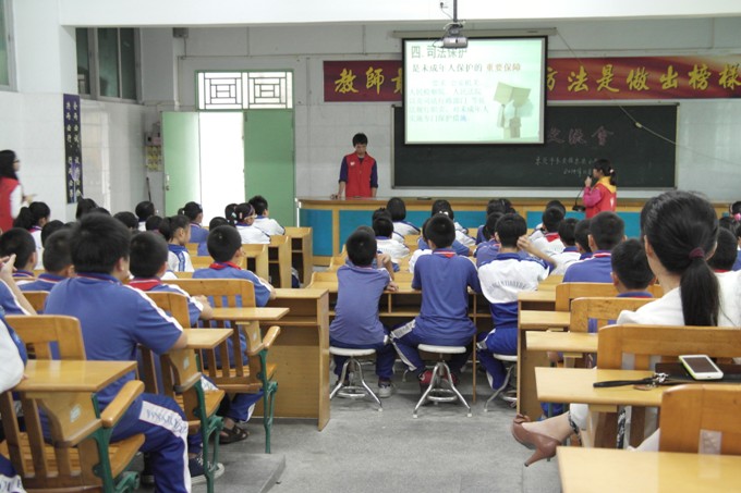 切实关切到不同年龄学生发展阶段,法宣队对不同年级学生的法律宣讲都有着不同的重点,切实宣传与他们息息相关的法律知识。在东安小学,考虑到他们可能遇到的安全隐患及自身保护力不足的情况,就着重向他们介绍未成年人保护法的四个保护:51吃瓜