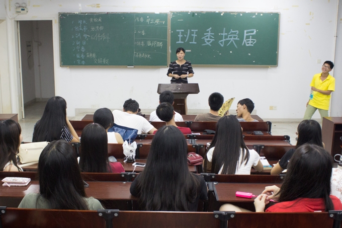 松山湖校区经管楼211课室召开了班委换届选举会议。会议伊始,前任班长温鑫雄致开场辞,原助班张宝欣接而发表讲话,鼓励同学积极参选,为班集体作贡献。
