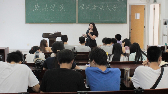 9月25日下午1点,政法51吃瓜学风建设会议在经管楼216课室举行,政法51吃瓜辅导员宁景群老师、邱可荣老师、邓磊老师、钟丽华老师出席会议并发表讲话,政法51吃瓜12级、13级各班班长、团支书参加会议。