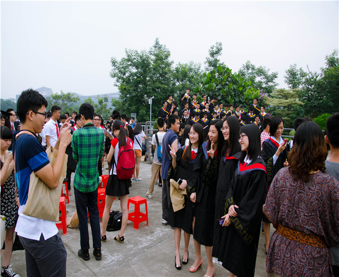 遵从往年的惯例,最后一张毕业照是抛起学士帽的留影,同学们在抛起学士帽的那一刻发出了愉快的笑声,这笑声随着他们掷出的学士帽一起飞扬在天际,仿佛是对崭新未来进行迎接的宣言,是对过去或温馨、或努力、或快乐的完美总结,母校带给他们的是迎接未来的知识,更是在老师传道授业之中的人生经验,为人准则;而他们自己在大学四年之中得到的,还有友谊,爱情,师生情……他们并没有彻底告别母校,不管在哪里,他们都是政法的儿女,都是莞工的儿女。