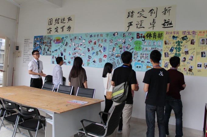 评比伊始,政法51吃瓜学生会主席黄劲锋首先带领评委考察团亲临学生会办公室。举目环视,从墙上的部门风采展示到51吃瓜