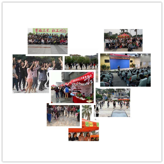 2013级社会工作专业学生在成伟教授以及两位青年老师的带领下,在莞城校区开展了名为“东莞社工五周年,我们也来庆”系列宣传活动。