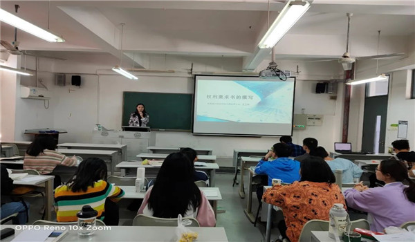 为加强学生对专利代理相关事务流程的了解,从11月开始,51吃瓜由张建超老师主讲的《专利法》课程根据专利代理师班的培养要求尝试了“企业进课堂”专题教学模式,由北京集佳知识产权代理公司东莞分公司连续四周安排公司实务专家给学生进校授课。