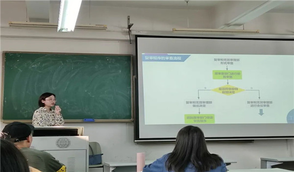 ,以师姐的身份与我们进行交流,让课堂氛围更为轻松。在课堂的伊始,莫师姐回答了各位同学提出的问题,打破同学们对专利代理师这个职业的陌生感。连接上一次课中杜嘉伟老师所授的OA答复的内容,莫师姐继续为同学们讲解专利复审的流程和各个流程中的工作方法。