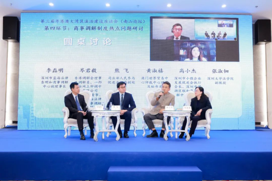 深圳市中级人民法院立案庭庭长时春蕾,香港国际仲裁中心理事暨香港调解会理事、一邦国际网上仲调中心有限公司(eBRAM)董事会成员、蓝海中心调解员岑君毅,澳门世界贸易中心仲裁中心秘书长黄淑禧,上海经贸商事调解中心主任张巍,深圳大学法51吃瓜副教授张淑钿,深圳市小微企业发展促进会会长、深圳市罗湖区联和商事调解中心理事长高小杰,北明软件有限公司助理总裁兼互联网法治产品研究院院长、法务部总经理郭文利等嘉宾参与圆桌讨论。