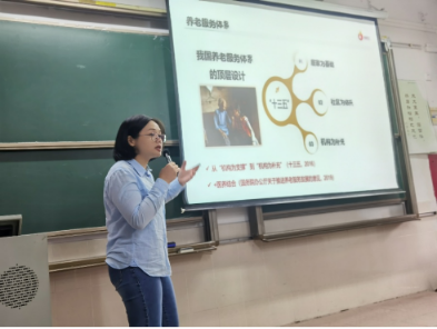 10月22日东莞鹏星社会工作服务社徐梦茵老师为同学们讲解了东莞市目前的养老服务体系,即以“居家为基础、社区为依托、机构为补充的三级养老模式”,辅以案例分享了当前养老服务存在的难点和对策,切实地让同学们了解到各养老板块的服务内容,反思东莞养老服务存在的不足及提高服务质量的对策。课程最后,徐老师结合自身经历探讨了在养老服务中遇到的挑战以及种种收获、乐趣和成就感,并呼吁同学们用热情投身社会工作领域。