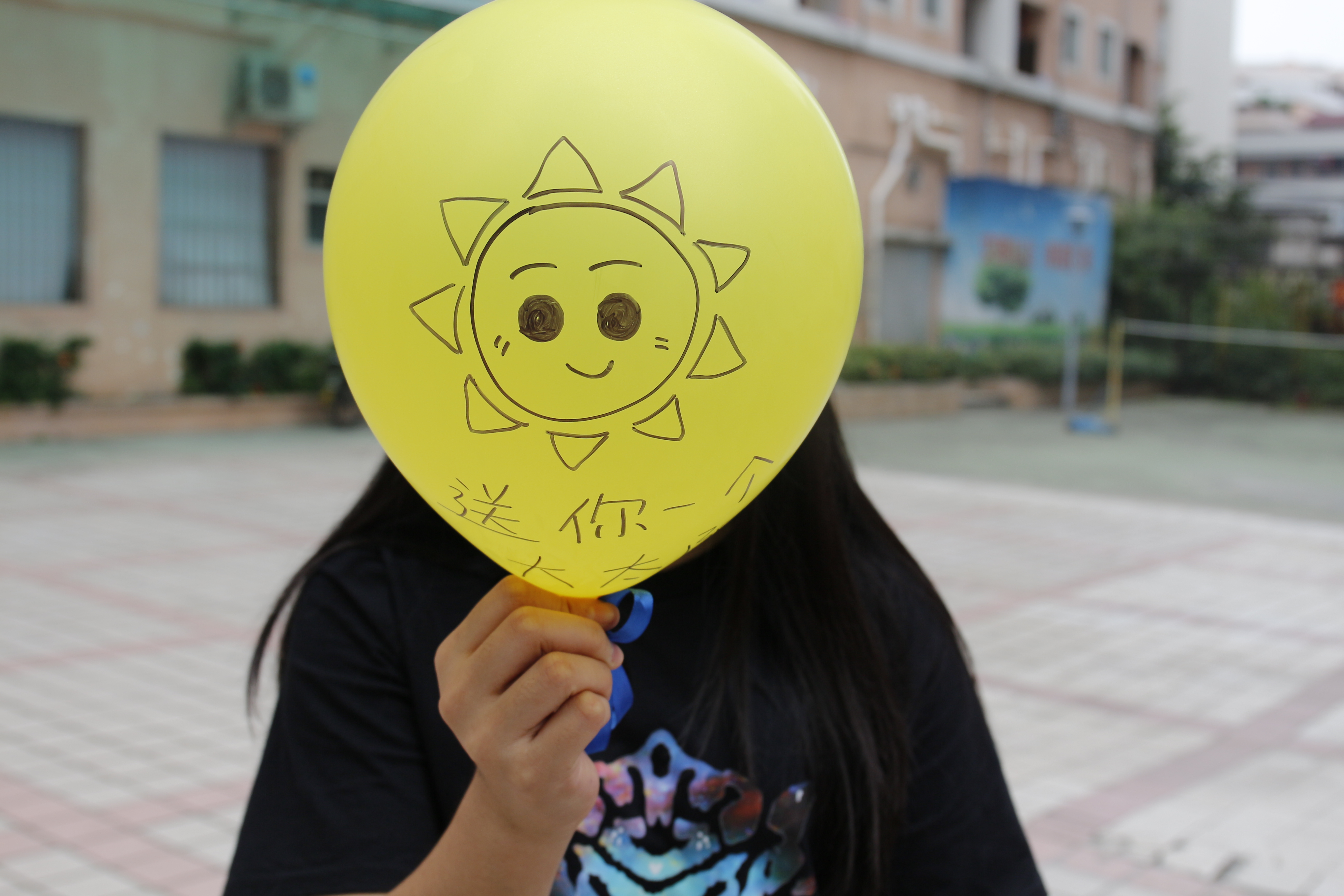 在活动开展之前,同学们都很用心地装饰气球,为气球系上彩带,在气球上写上对他人的祝福,在气球上绘画,画上漂亮可爱的图案,向收到气球的同学表达自己衷心的祝福。